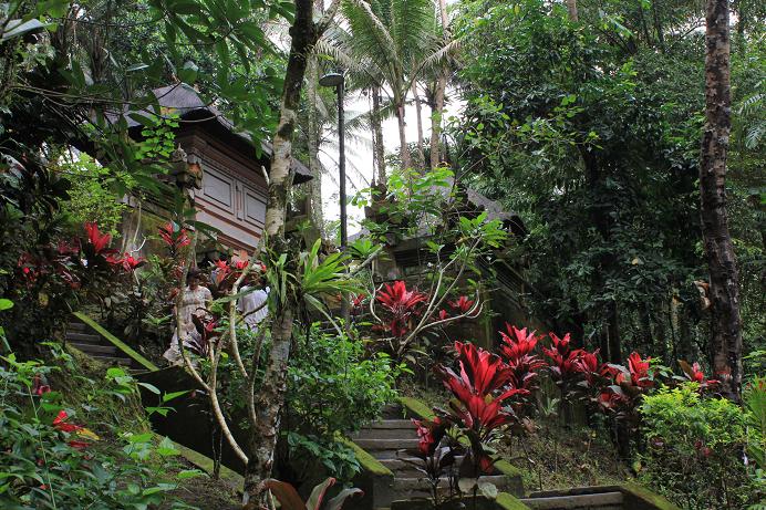 De aquí nos vamos a Goa Gajah, la cueva del Elefante. Los balineses rezan aquí al dios Shiva y a su hijo con cabeza de Elefante. Goa Gajah tiene una cueva en cuya entrada está tallada en la piedra lo que parece una cabeza de elefante.