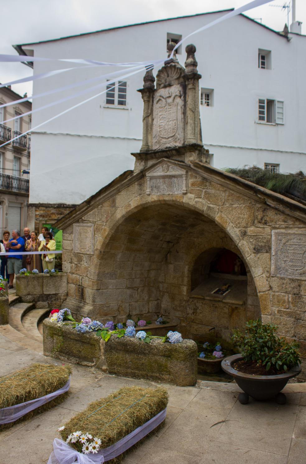 La boda tiene lugar sobre la una de la tarde delante de la Fonte Vella. Sobre esa hora, empieza a llegar el cortejo en el que primero aparece el novio y la madrina. En este momento ya el resto de la comitiva, familiares y amigos, esperan con sus mejores galas sentados en la paja.