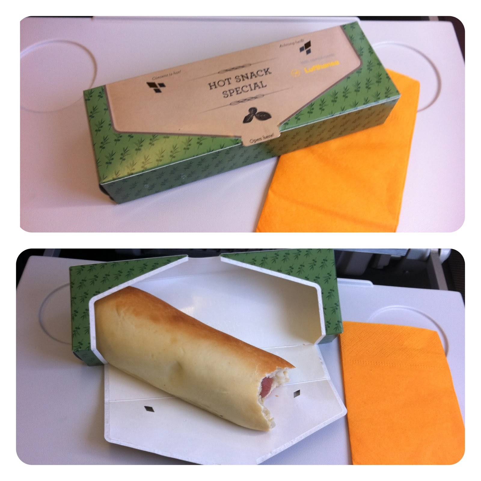 A la una más o menos salimos directos hacia Frankfurt y en el avión ya nos dieron una «merienda» (un perrito y bebida).