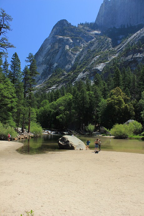 Aquí empezó el dilema. ¿Y que hacemos hoy? ¿Vamos hasta Lower Yosemite Falls? ¿Vamos hasta Vernal Falls? ¿o vamos hasta Mirror Lake? Bueno pues concluimos que como cascadas ya habíamos visto las Bridalveil pues decidimos arriesgarnos con Mirror Lake que suponíamos que algo de agua tenía que tener puesto que las cascadas estaban a rebosar.