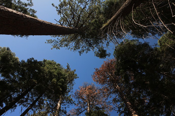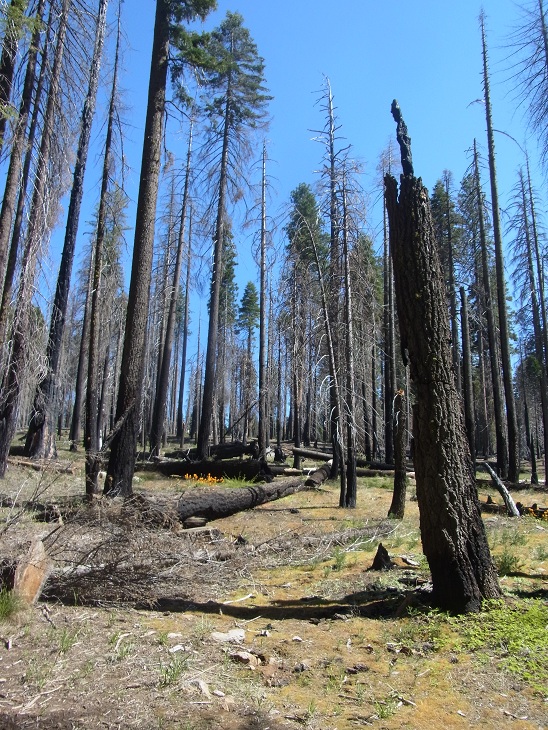 A lo largo del trayecto vamos viendo árboles quemados y es que desde la época de los 60 se empezó a analizar la situación de las Secuoyas y se llegó a la conclusión de que lo que estaban haciendo, evitando los incendios naturales, estaba impidiendo la proliferación de las secuoyas ya que esto hacía prosperar otro tipo de árboles y plantas que eran tolerantes a la sombra y que redujeron la entrada de luz solar, compitiendo con las secuoyas por la luz solar, la humedad… A partir de entonces empezaron a realizarse incendios controlados de manera que se eliminaba la hojarasca y dejaban un pequeña capa de ceniza rica en nutrientes sobre el suelo. Todo esto junto con otra serie de condiciones hacía que las secuoyas tuvieran un entorno agradable para crecer y prosperar.