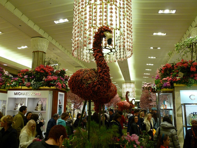 Después de este descanso, subimos por la quinta en dirección al EMPIRE STATE BUILDING. La verdad es que las vistas del Empire son mucho más espectaculares desde cualquier punto de Manhatan que desde sus pies, ya que desde aquí no se aprecia su majestuosidad. Seguimos la calle 34 hasta Victoria Secret y después a Macys. La verdad es que me quedé con la boca abierta, estaba lleno de flores, decorado con montones de flores. Y los escaparates… una pasada.