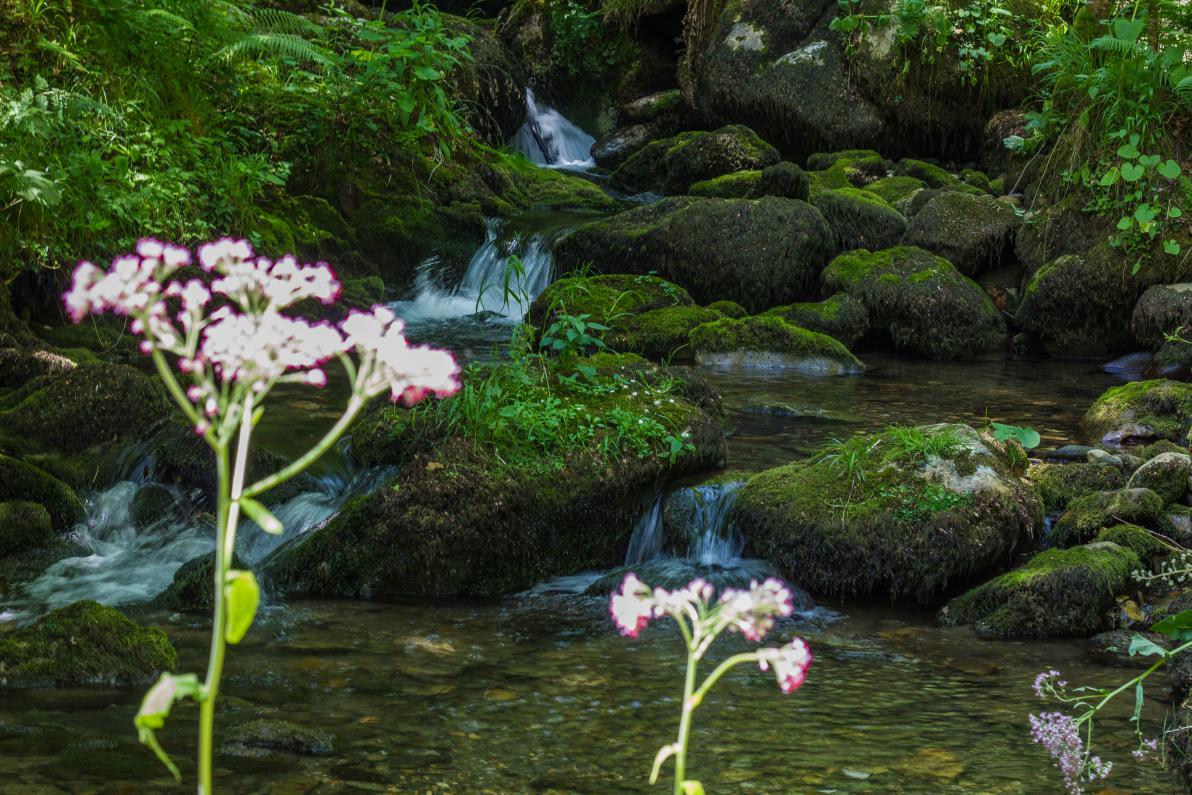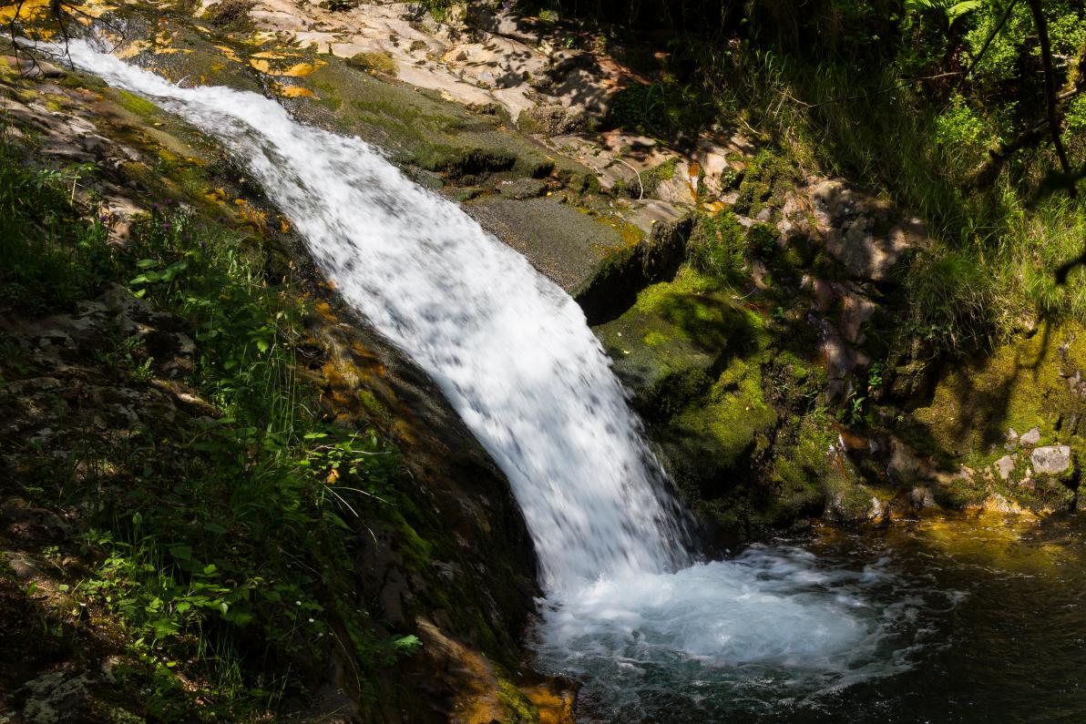 Seguimos avanzando hasta llegar al puente donde el sendero se bifurca. Aquí hay que tener de nuevo precaución. Si cruzamos el puente y seguimos las indicaciones amarillas de ruta, éste nos llevará hasta el pico Vizcares con lo que tenemos que hacer es dejar el puente a nuestra derecha, continuar por el sendero de la izquierda y omitir la señal en forma de cruz amarilla que nos indica que esa no es la ruta adecuada. El sendero gira a la derecha y nos adentramos en las Foces del río Infierno, una maravilla de la naturaleza que nos deja multitud de imágenes con cascadas, saltos de agua, y una elevada cantidad de árboles con formas extrañas.