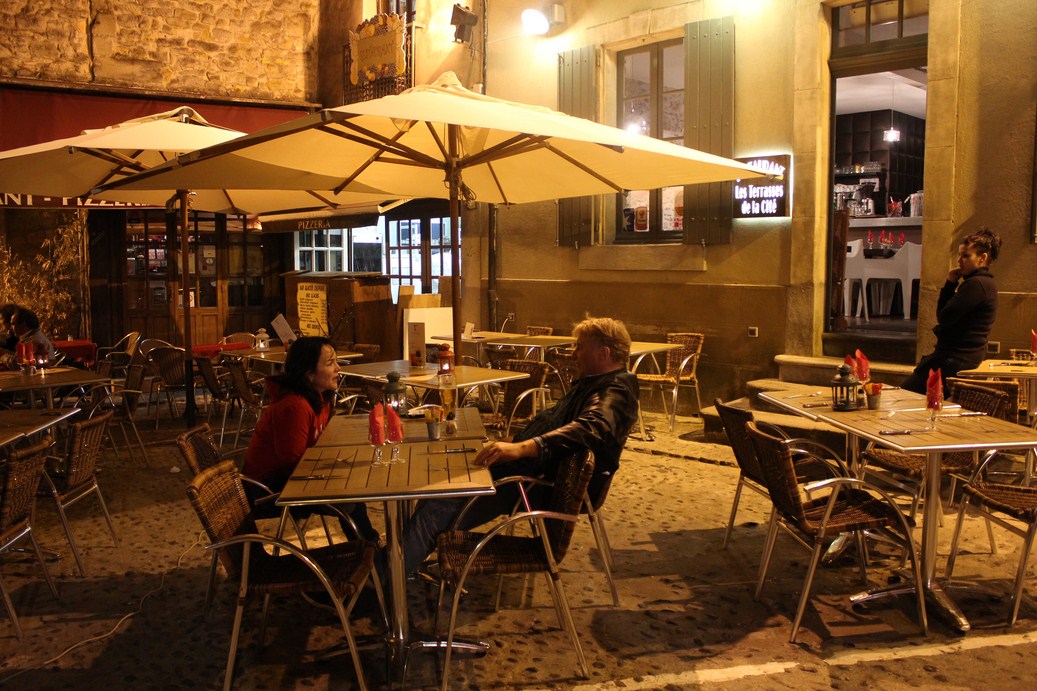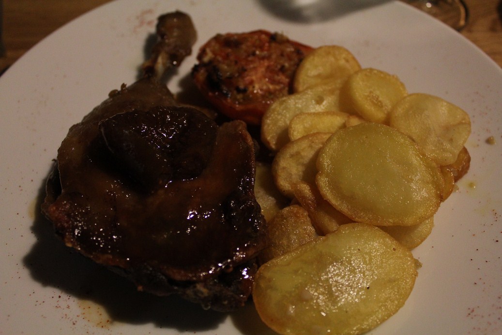 Como no habíamos comido nada decente decidimos cenar temprano. Escogimos para esta vez el Aubergue Le Plô. De primero comimos los dos una ensalada con hígado de pato, muy muy buena. De segundo Rubén pidió un entrecot y yo para ir empezando con el pato, un confit de pato en salsa de higos (buenísimo) y todo ello con el postre, el pan y el vino (uno de la zona) y todo por 41 euros.